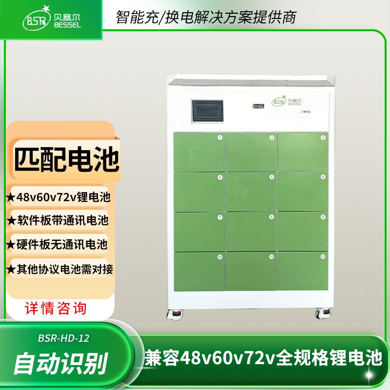 貝塞爾換電柜12倉兼容電動車48V60V72V電池自動識別智能掃碼換電